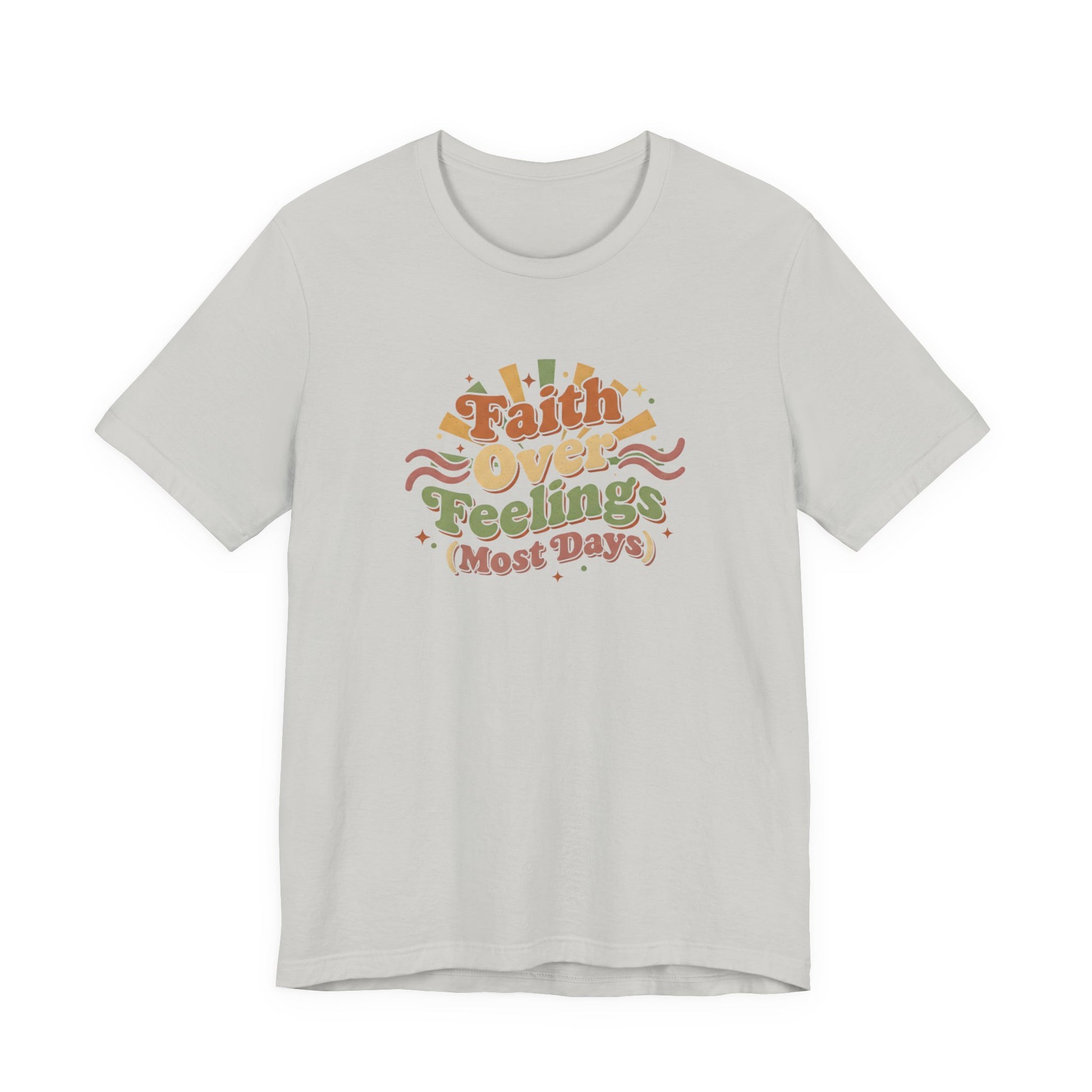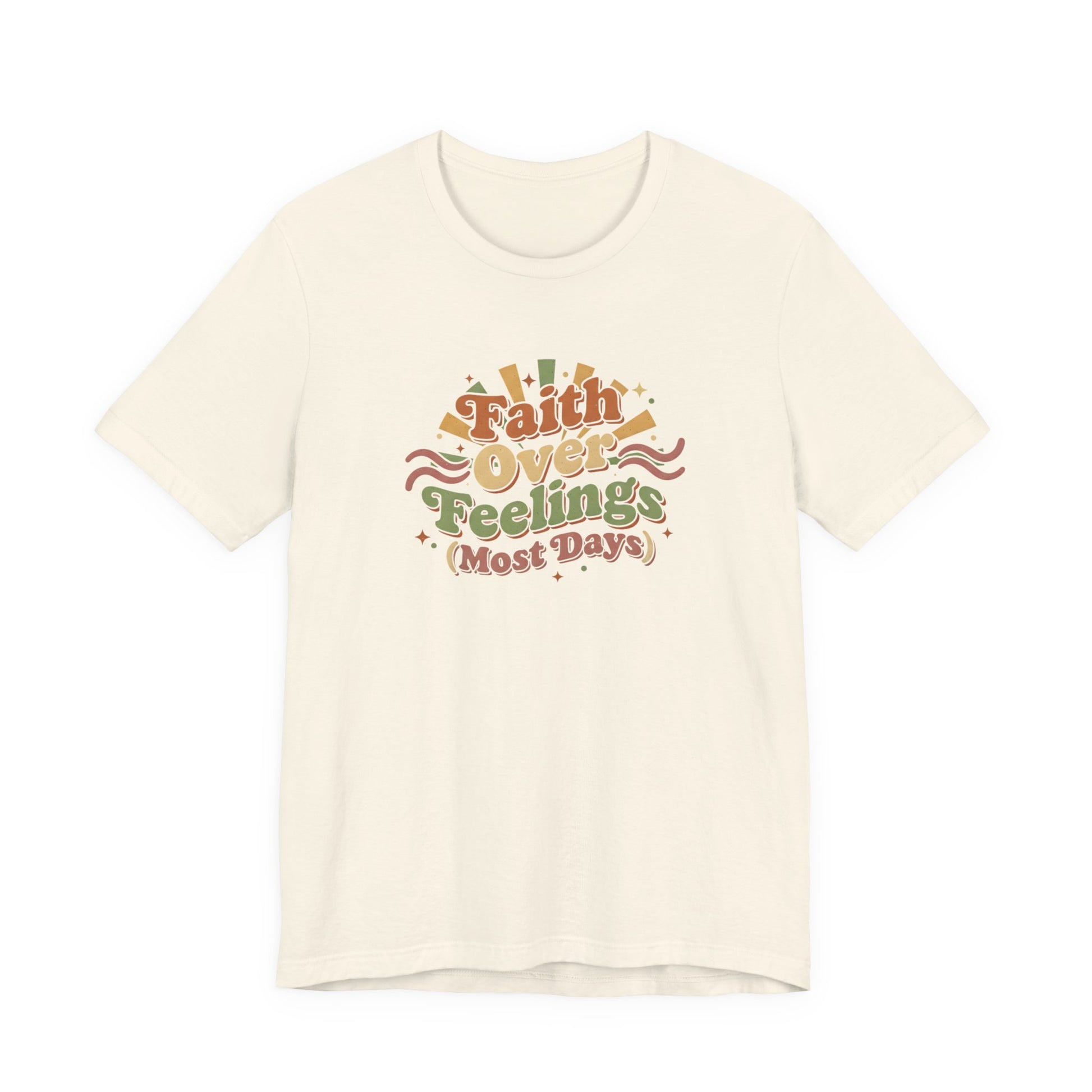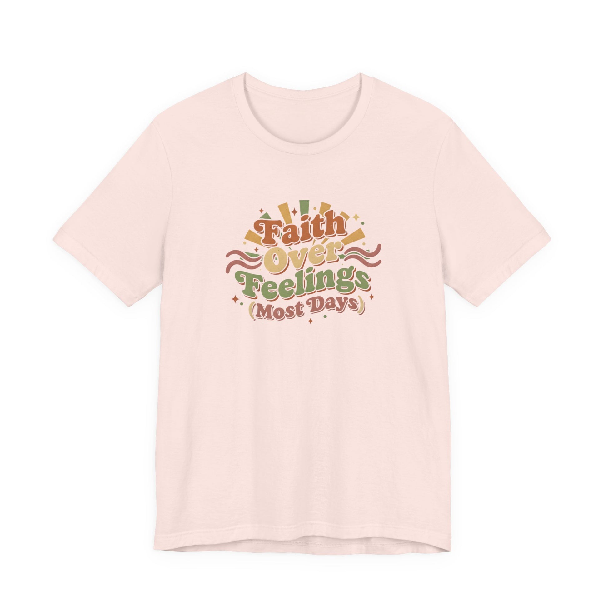 This tee is for the woman who is genuinely, actively, daily practicing the discipline of choosing faith when her feelings have other ideas. She’s not pretending the feelings aren’t real. She’s not spiritually bypassing anything. She’s doing the actual work of choosing what she believes over what she feels and she’s honest enough to add “most days” because that’s where she actually lives. Right there in that gap. Every day. Still choosing.