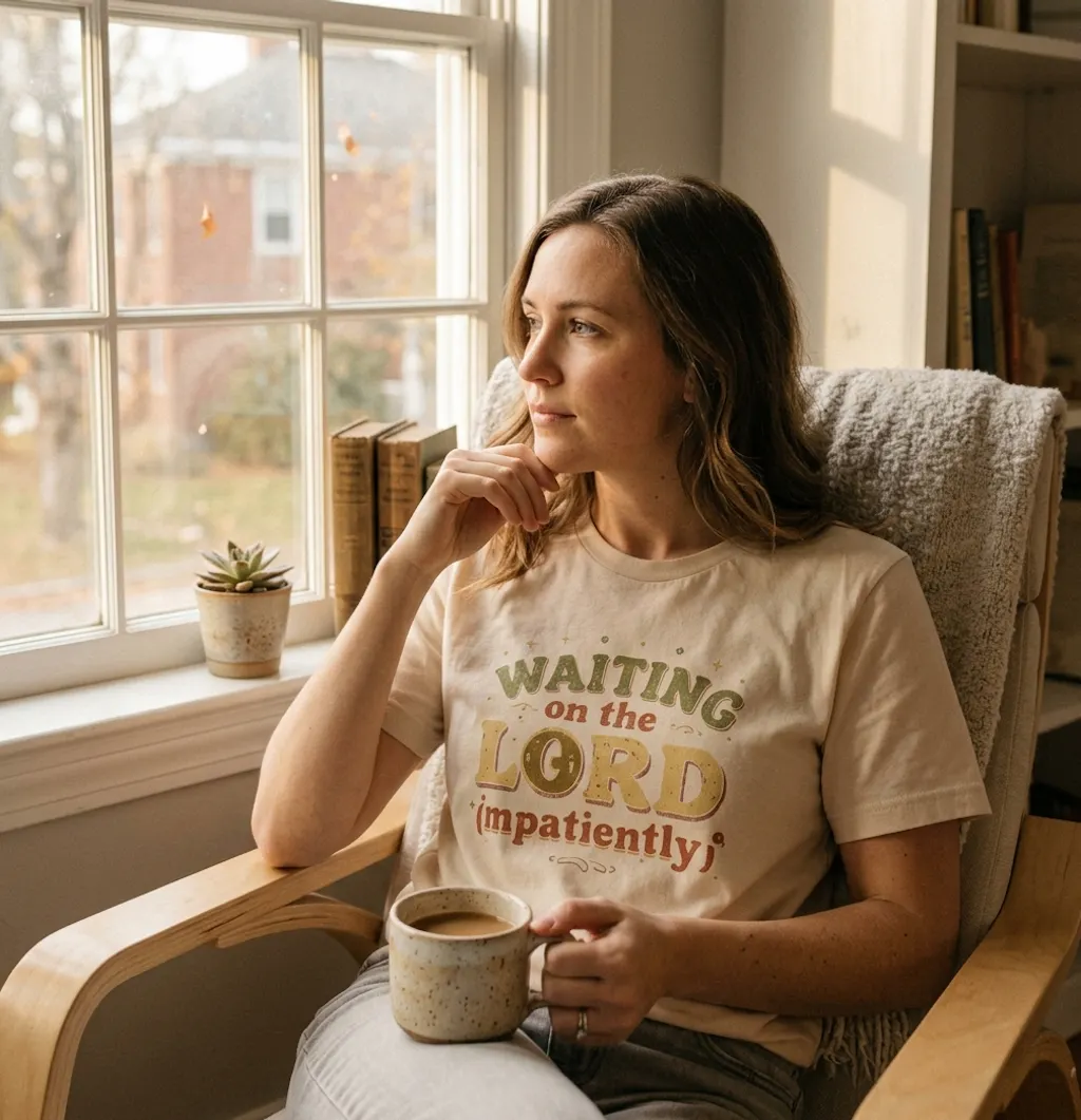 Every ordinary moment of the wait • Bible study with women who get it • Cooking, errands, and real daily life • Casual Sunday church • Anyone trusting God through a hard season • The woman who is genuinely waiting and genuinely struggling and showing up faithfully anyway • Two friends in the same season who need matching tees and someone who understands • The most honest, loving, and deeply relatable faith gift for the woman in the middle of the wait.
